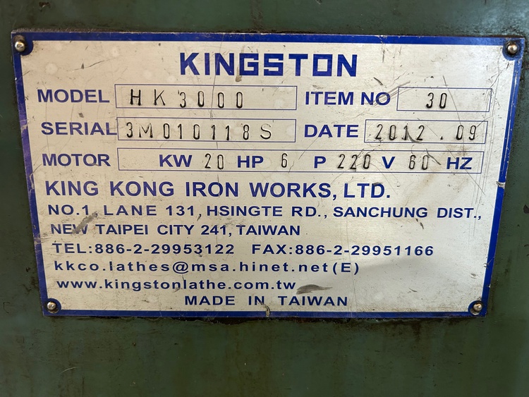 ONE USED - 30” x 120”cc KINGSTON Hollow Spindle Engine Lathe